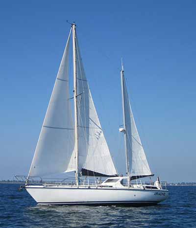 Eigentlich sollte es kein Problem sein, die Bootsdaten zu beschreiben - eigentlich. Aber z. B. die Längenangaben wie "Länge über Alles" der einzelen Dokumente schwanken von 12 bis 14 m. Hier ein altes Prospekt der Werft und hier gibt es einen Riß.