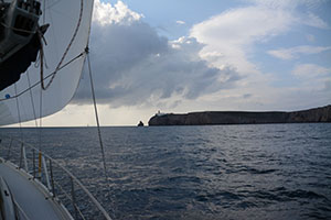 Gegen 20:00 Uhr umrunden wir das Kap. Danach ist der Segelwind weg und wir fahren auch die ganze Nacht unter Motor.