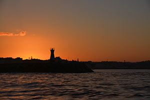 Die Welle wird schlimmer und wir setzen Besan und das Vorsegel (etwas eingerollt). Wir stampfen uns in der Welle fest und kommen mit 2-3 Knoten voran. Der Wind ist genau gegen an und eine Wende bringt uns nur minimal weiter. So können wir unser Ziel Penische nicht im Hellen erreichen und wir beschließen umzukehren um bei Cascais zu ankern.