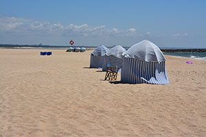 Ich suche einen Bankautomat und einen Supermarkt und lerne den Ort kennen. Der Strand jedenfalls ist riesig (lang und breit).