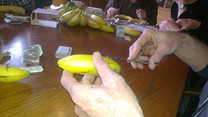 Medikamente sind beschafft und das Nähen von Wunden an einer Banane trainiert. (Hoffentlich müssen wir das nie anwenden!!)