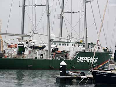 Als wir abends eine Runde am Hafen, vorbei an den schon etwas verfallenen Anlagen des 32. Americas Cup gehen, sehen wir die Menschenmassen in einer unendliche langen Schlange vor dem Greenpeace-Schiff auf eine Besichtigung warten.