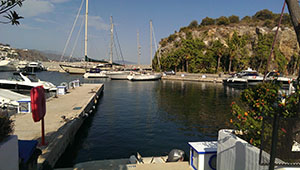 Vergeblich versuchen wir die Marina über Funk anzurufen, schließlich fahren wir einfach in den Hafen und machen an einem der vielen freien Liegeplätze fest. Ich gehe zum Office und höre, wir können nicht bleiben, weil alle freien Plätze gebucht sind. Wir legen wieder ab und dann sehen wir jemand aus dem Office kommen: Wir dürfen wieder fest machen.