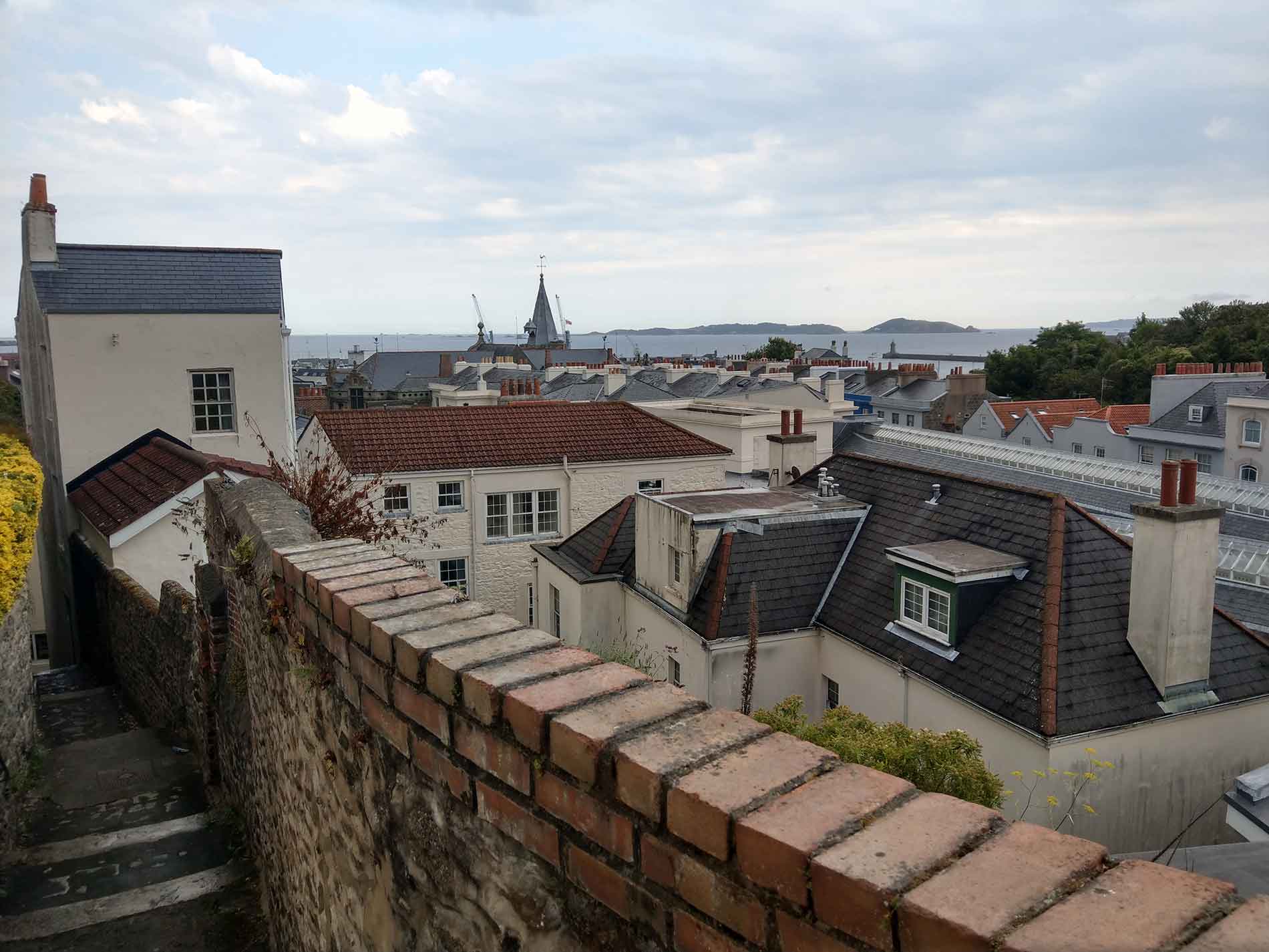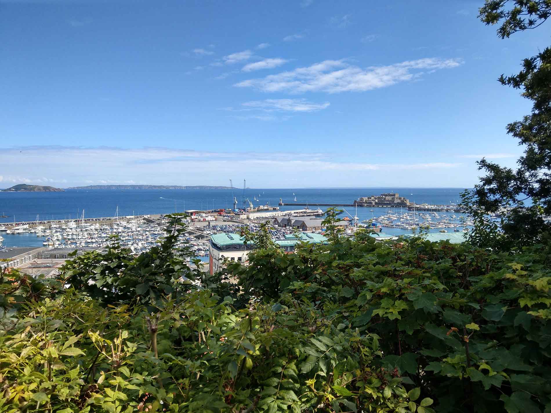 Gegen 13:30 Uhr erreichen wir Guernsey. Vorher haben wir die britische Gastlandsflagge gesetzt und darüber dskutiert, wie die gelbe Flagge Q gesetzt werden soll. Wenn man auf die Kanalinseln einreist, muss man die Flagge Q zum Einklarieren setzen. An der Backbord- oder Steuerbordsaling mit oder Gastlandsflagge - wir waren uns bis zum Schluss nicht einig und setzen Gastlandsflagge und Q an Steuerbord.