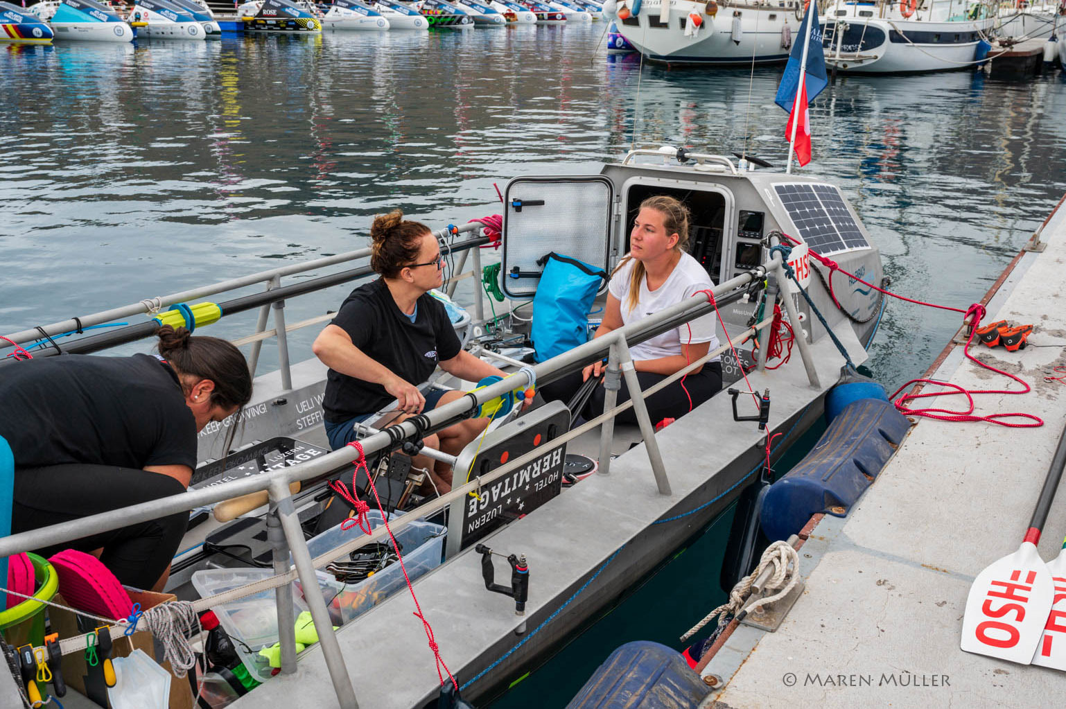 Ich streife mit meiner Kamera durch den Hafen und lerne zwei junge Schweizerinnen kennen, die sich der Herausforderung stellen wollen. Ich darf sie fotografieren und begleite Marina und Sonja ein wenig mit der Kamera. Hier gibt es etwas zu ihrem Projekt.