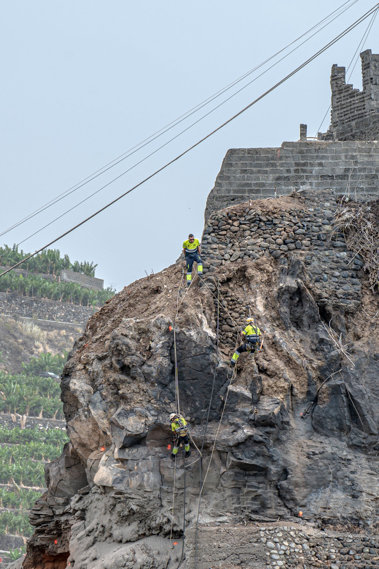 Die Straße von Tazacorte nach Puerto Tazacorte ist schon mehr als eine Woche komplett gesperrt. Der Grund war eine heftiger Steinschlag. Die Felsbrocken sind inzwischen weggeräumt, aber nun wird der Abhang gesichert.