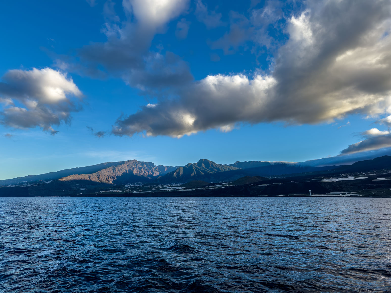 Zu Beginn fahren wir unter Motor in Lee von La Palma. Kurz vor der Südspitze der Insel gibt es dann Wind. Wir sind mit der Sturmfock und dem 2. Reff im Groß erstaunlich schnell.