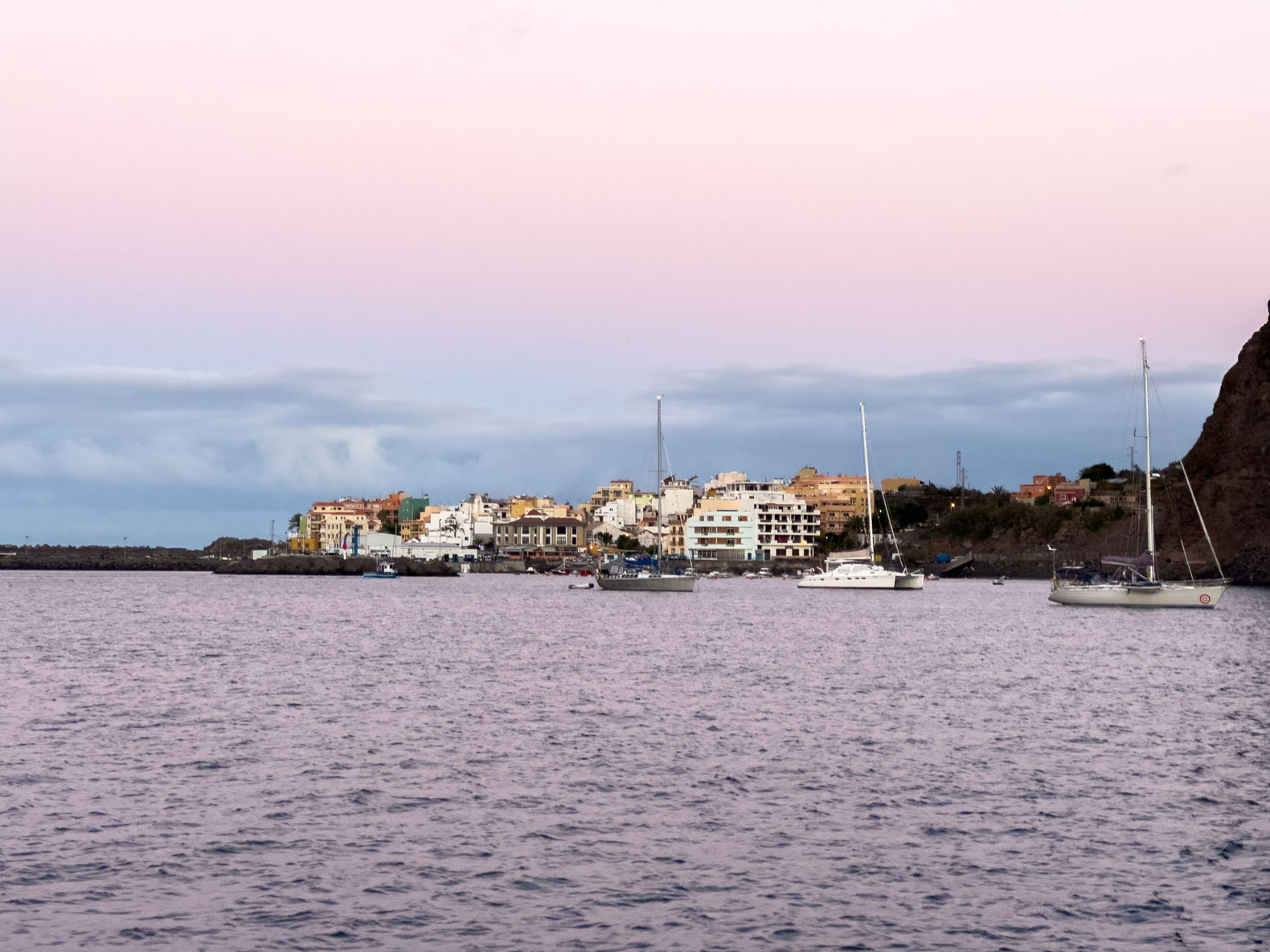Mit dem letzten Tageslicht erreichen wir unseren Ankerplatz in Valle Gran Rey.